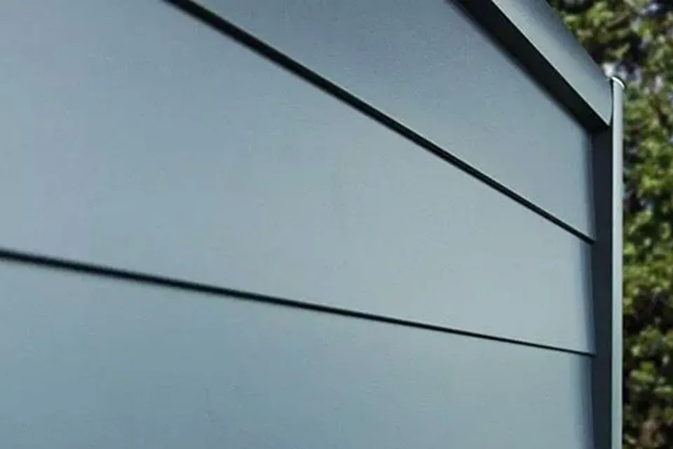 De Verano Tarifa V720 is maximaal 2 meter breed per schuttingdeel te verkrijgen, de hoogte heeft wel bijbehorende vaste maten. De aluminium schuttingen zijn door middel van speciale montageprofielen aan elkaar te koppelen zodat je zelf bepaalt hoe breed jouw afdichting wordt. Het is mogelijk om een deel te laten scharnieren, zodat het als deur fungeert. De Verano Tarifa wordt standaard in het antraciet geleverd, inclusief RVS afdekkapjes. Tegen een meerprijs is elke RAL-kleur mogelijk.