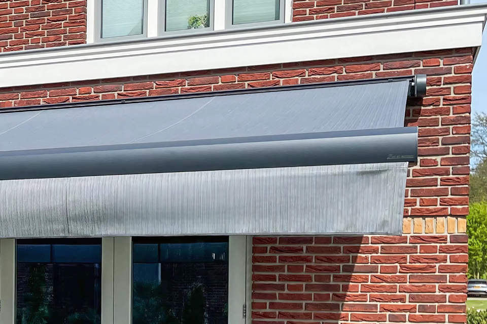 De uitval is de maximale afstand tussen de muur en de voorlijst. Hoe groter de uitval, des te meer effect het zonnescherm heeft.