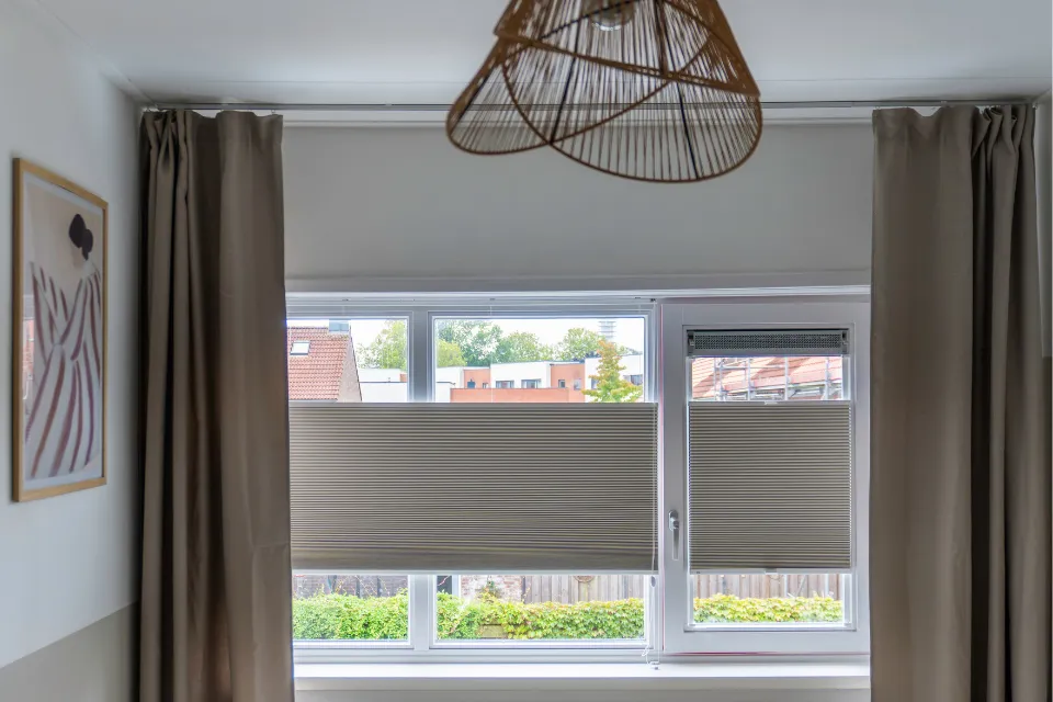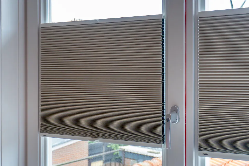 Een Verano duo plisségordijn is te bewonderen in onze showrooms.