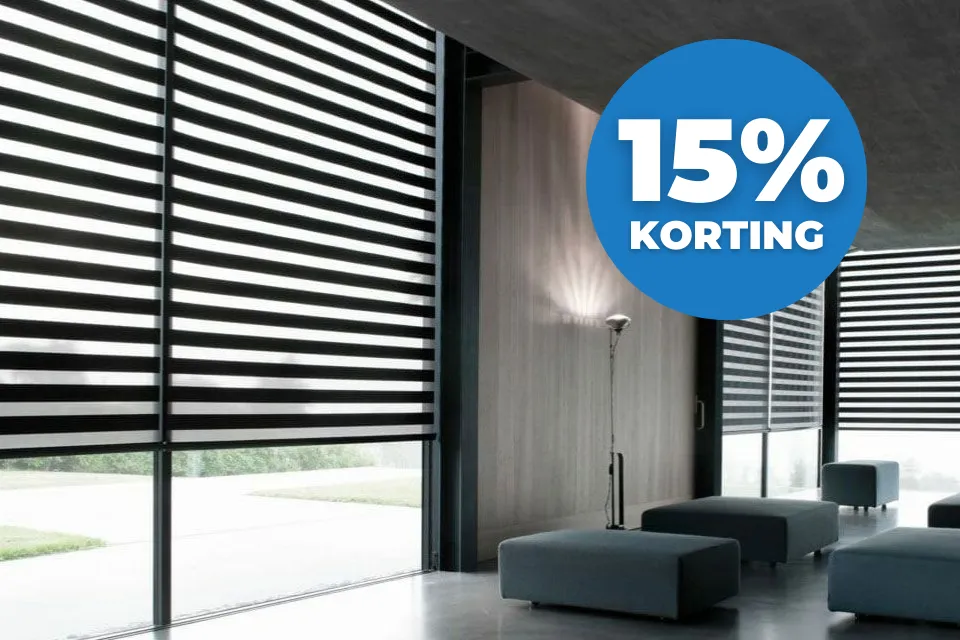 De Zonnelux duo rolgordijn is te bewonderen in onze showrooms.