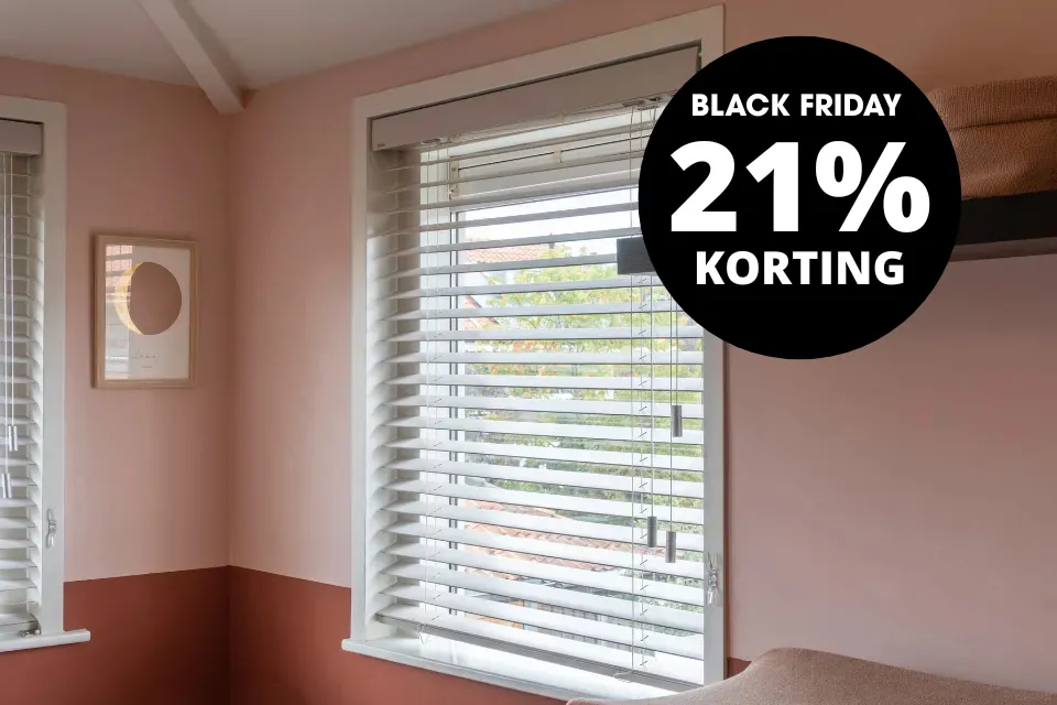 De Verano houten jaloezie 50 mm is te bewonderen in onze showrooms.