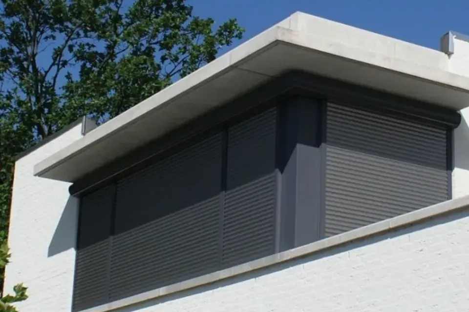 De Zon en Scherm ZS40 XL is dé oplossing voor grote raampartijen. Dit rolluik, ook wel bekend als een 2-in-1-bak rolluik, bestaat uit één cassette en twee pantsers. De pantsers worden door een middengeleider aan elkaar gekoppeld. Omdat de cassette tot een maximale breedte van 7,40 meter uit één stuk wordt gemaakt zien de twee rolluiken eruit als één groot rolluik. Het is mogelijk om de twee pantsers afzonderlijk van elkaar te bedienen. Hier zijn twee motoren voor nodig. Indien je voor één motor kiest gaan de twee pantsers tegelijk omhoog of omlaag.