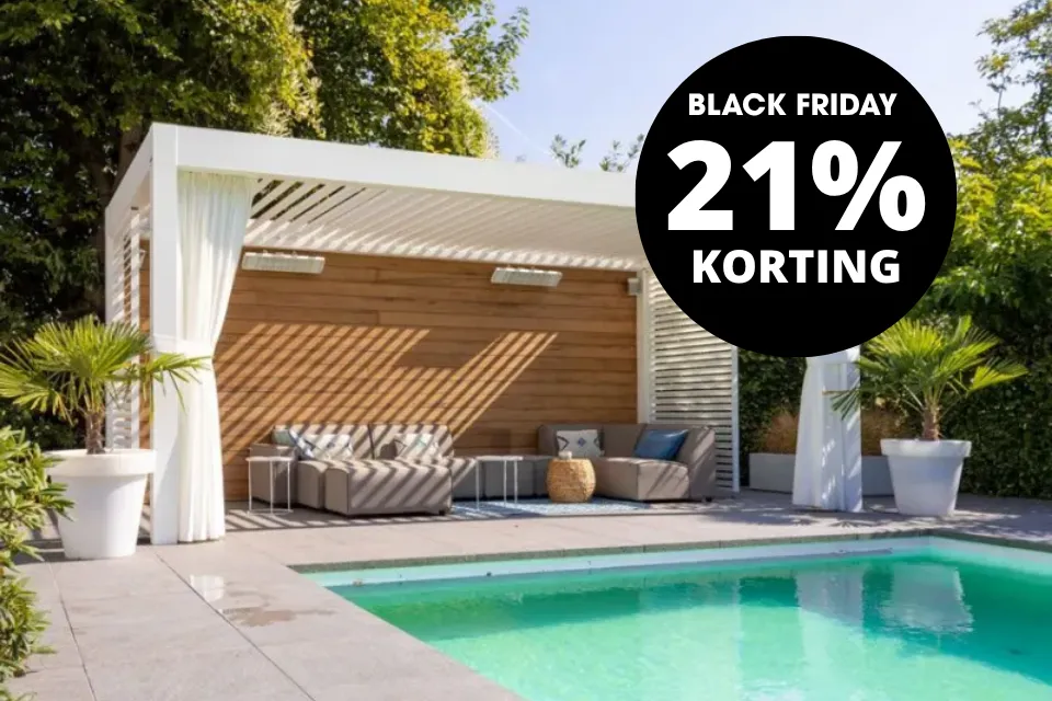 Het lamellendak van deze terrasoverkapping is met een afstandsbediening te bedienen. Je kan de lamellen in meerdere standen zetten, zoals open of om weer te sluiten. Met gesloten lamellen zit je heerlijk buiten uit de zon. Dit model heeft als voordeel dat het een spatwaterdichte afwerking heeft en je ook gewoon bij minder weer heerlijk droog kunt zitten. Behoefte aan ventilatie op je terras? Je kunt de stand van de lamellen eenvoudig veranderen en extra ventilatie creëren. Deze terrasoverkapping heeft een aluminium afwerking en past daardoor goed op een modern terras.
