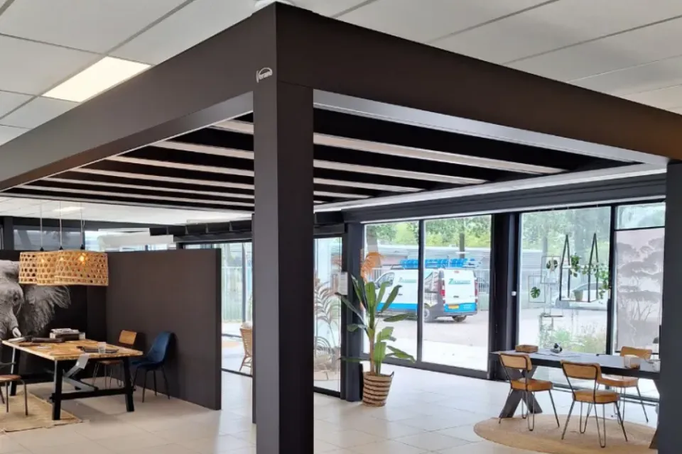 Benieuwd naar alle mogelijkheden voor jouw droom-terrasoverkapping? De Verano Belluno V875 is te bewonderen in onze showrooms.