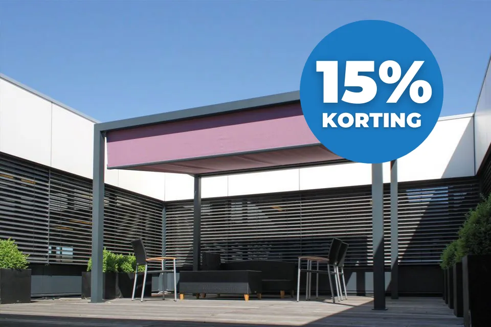 Bij de Verano Cortona V805 terrasoverkapping (vrijstaand), ook wel bekend als de Cube of Cubola, staan design, sfeer en functionaliteit centraal. De terrasoverkapping is te gebruiken als volledig horizontale zonwering. Met één druk op de knop verstel je de hellingshoek. Ideaal, want bij een lichte regenbui hoef je je dus geen zorgen te maken over de afwatering en daarnaast kun je lekker buiten blijven zitten. Het systeem wordt aangedreven door twee Somfy-motoren: één om het doek in en uit te schuiven en één om de voorzijde van het doek te laten zakken.
