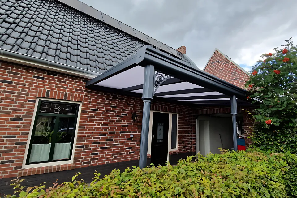 De Verano Purbeck V918 is een karakteristieke terrasoverkapping met een Engelse uitstraling. De Verano Purbeck valt op door zijn sierlijke details, rustieke elementen en een klassieke goot. Het dak bestaat uit polycarbonaat platen of veiligheidsglas. De aluminium constructie voldoet aan de Europese norm voor dragende constructiedelen.
