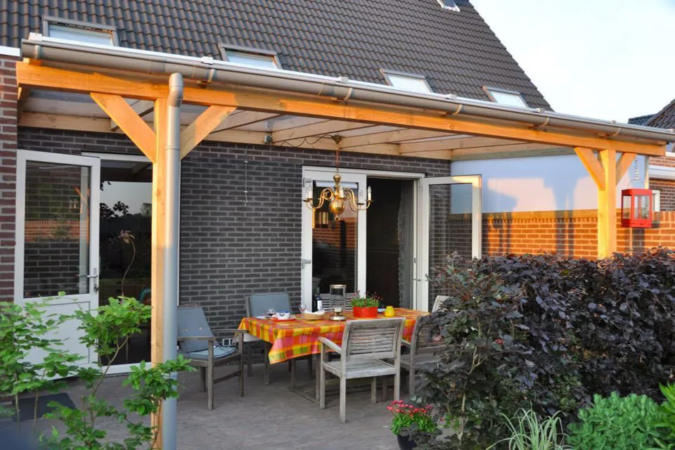 Het daksysteem van de vrijstaande houten overkapping bestaat uit polycarbonaat of 55.2 veiligheidsglas. De polycarbonaat platen weren de zon en zorgen voor een natuurlijke lichtdoorlatendheid. Het voordeel van glasplaten is dat je het vrije zicht behoudt en bovendien zorgt glas voor een luxe uitstraling. Het is mogelijk om de houten constructie te laten beitsen of schilderen. De afwatering gebeurt via siergoot. Deze is verkrijgbaar in het wit of antraciet. Zo kies je zelf voor de vrijstaande houten overkapping die bij jouw situatie past!
