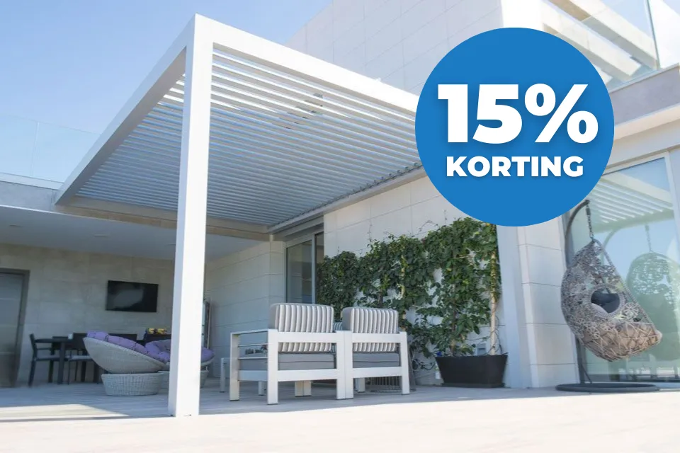 De Zon en Scherm Wetar is een lamellen overkapping voor een eerlijke prijs. Bij een zonnige dag open je de lamellen, met de handzender of via je smartphone, om heerlijk te genieten van de buitenlucht. Heb je liever schaduw? Kantel de lamellen dicht en je creëert eenvoudig en snel een schaduwplek. Regen? Geen probleem want het lamellendak is spatwaterdicht en beschikt over geïntegreerde regengoot voor de afwatering.