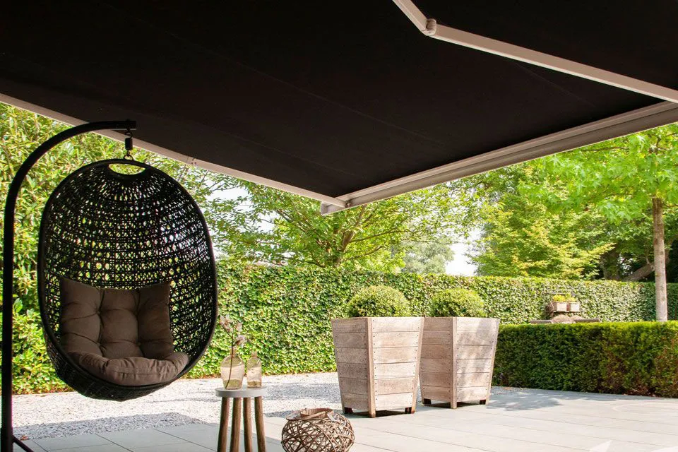 Ondanks de standaardafmetingen heb je de keuze uit drie standaard systeemkleuren en ruim 125 zonneschermdoeken. Optioneel kan je de handmatige bediening upgraden naar een elektrische opbouwschakelaar, draadloze wandschakelaar of afstandsbediening. Het zonnescherm wordt dan aangedreven door een Somfy motor.